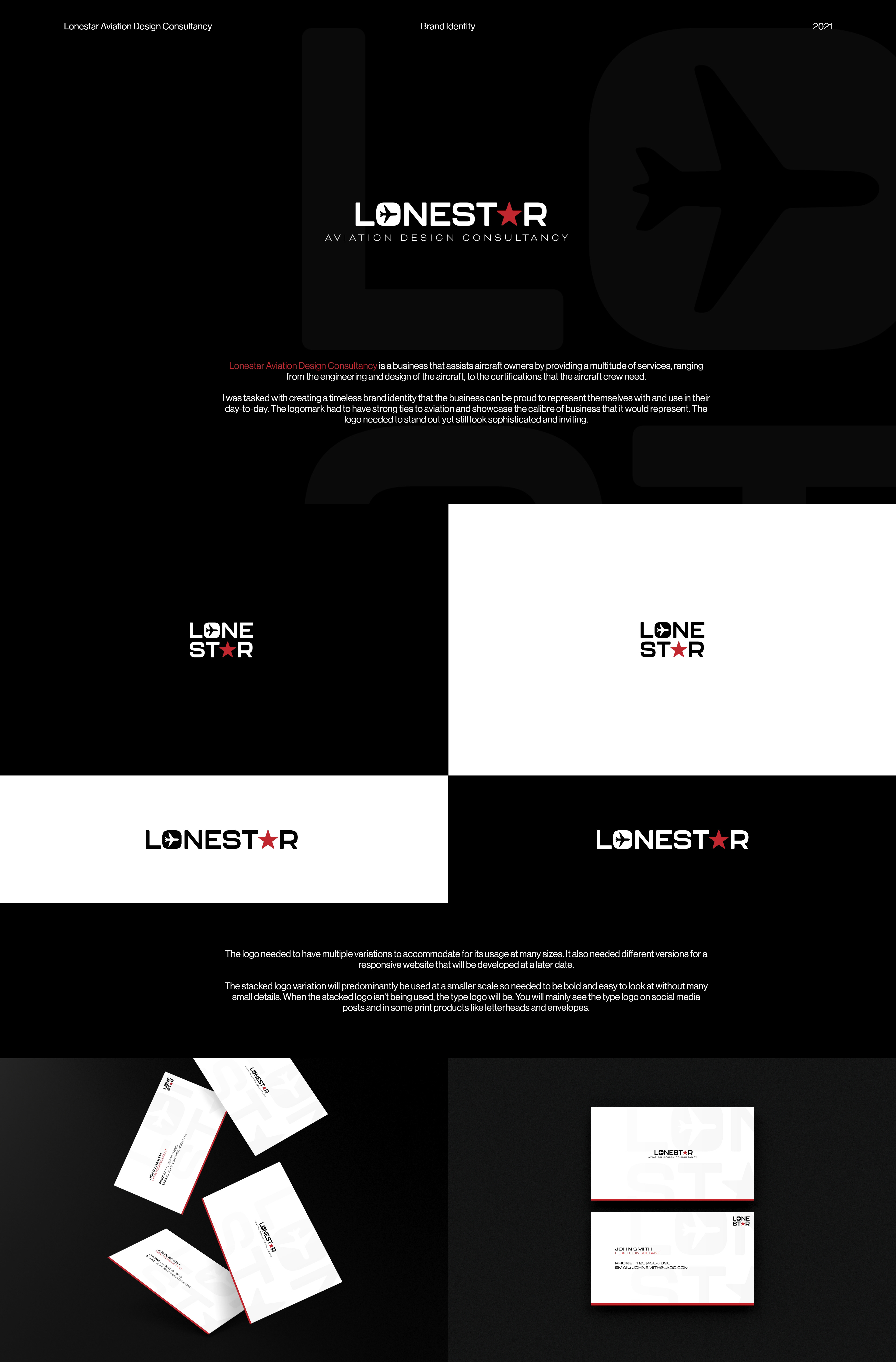 Brand Identity for Lonestar Aviation Design Consultancy. A business that assists aircraft owners by providing a multitude of services, ranging from the engineering and design of the aircraft, to the certifications that the aircraft crew need.